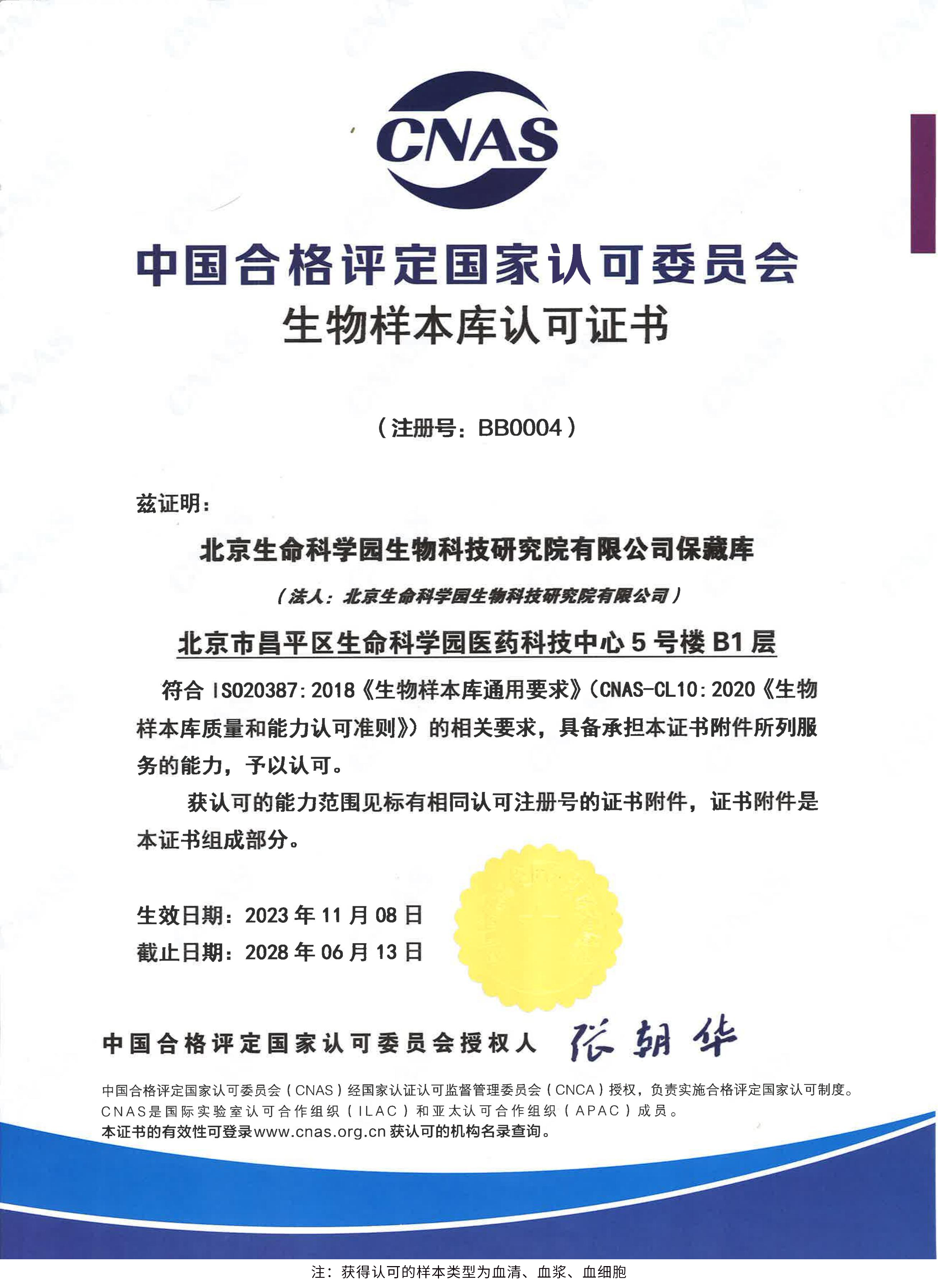 北京生命科學(xué)園生物科技研究院(以下簡稱“北京生物樣本資源庫”)(Biobank of Life Science Park,簡寫“BoLSP”)是一家由北京市科委和中關(guān)村生命科學(xué)園共同支持設(shè)立的第三方生物樣本庫公共服務(wù)平臺,秉承北京重大疾病臨床數(shù)據(jù)和樣本資源庫(以下簡稱“北京庫”)(Beijing Biobank of Clinical Resources,BBCR)十余年的發(fā)展成果,聚合眾多臨床樣本專家的專業(yè)共識,致力于在生命科學(xué)、生物醫(yī)藥研究領(lǐng)域發(fā)揮銜接樣本資源持有者與研究者的橋梁作用,解決生物樣本資源開發(fā)上下游信息不對稱、資源共享困難等問題。研究院在北京中關(guān)村生命科學(xué)園昌平園區(qū)建立了2000㎡生物樣本庫,最大存儲規(guī)模達(dá)1000萬份。研究院遵循CNAS-CL10:2020《生物樣本庫質(zhì)量和能力認(rèn)可準(zhǔn)則》,同時(shí)結(jié)合北京庫過去十年的工作經(jīng)驗(yàn)與教訓(xùn),建立了一套完善的生物樣本保藏質(zhì)量管理體系,從人、機(jī)、料、法、環(huán)、控多個(gè)角度,實(shí)現(xiàn)生物樣本保藏過程的全面質(zhì)量控制,先后獲得國家科技部頒發(fā)的人類遺傳資源保藏行政許可證書和中國合格評定國家認(rèn)可委員會(huì)(China National Accreditation Service for Conformity Assessment,CNAS)頒發(fā)的“CNAS認(rèn)可證書”。